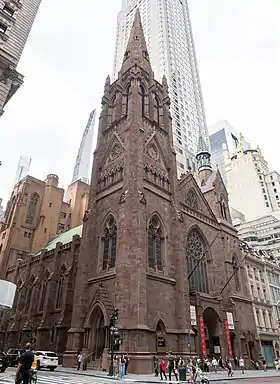 En 1873, la congregación compró el sitio sin desarrollar en la Quinta Avenida y la Calle 55 por 350 000 dólares para la construcción de un nuevo santuario. Los líderes de la iglesia creían que el Central Park recientemente establecido sería una barrera natural contra la expansión comercial y de fábricas. Con su campanario de 286 pies de altura, la iglesia era el edificio más alto de Manhattan cuando se inauguró en 1875.[9]