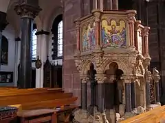 La gran araña anular suspendida de la tapa de la cúpula es una reinterpretación de la de la iglesia abacial de Saint-Pierre-et-Saint-Paul en Wissembourg, destruida durante la Revolución francesa.
