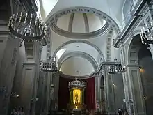 En el interior del templo se encuentra una sepultura, la del brigadier Claudio Traggia, fallecido en 1792. Hay una capilla dedicada a la Virgen de Montserrat y otra a la Virgen de Loreto, patrona de la Aviación.[10]