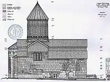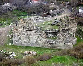 Antes de eso, el edificio se había reducido a ruinas: la cúpula y todas las bóvedas se habían derrumbado, al igual que las paredes superiores. Porciones del altar y las cámaras a ambos lados del mismo —el diaconicón en el sur y la prótesis en el norte— con paredes facetadas sobresalientes habían sobrevivido. Las paredes interiores conservaron fragmentos de la decoración, como pilastras con arquitrabes y detalles ornamentados de la pared del altar. Las piedras ricamente ornamentadas de la iglesia se pueden encontrar dispersas en otras partes de la aldea, utilizadas por los lugareños para sus propias estructuras.[5] Las excavaciones arqueológicas han encontrado otros varios edificios, como una iglesia del siglo X y estructuras accesorias, con inscripciones georgianas medievales, dentro y alrededor de la catedral en ruinas.[2][8]