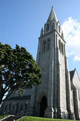 Fue consagrada el 25 de julio de 1863, día de San Jaime, sin la torre-campanario, esta se inició en 1865 pero su finalización se retrasó hasta 1870, debido a varias tormentas. cuenta con 53.3 metros (175 pies) de altura, con pináculos, un tambor octogonal y una aguja que lo remata. Puede ser observada desde los alrededores y desde el paseo marítimo de Bray y desde la montaña de Bray Head.