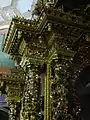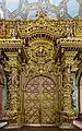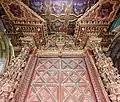 La mampara de la nave principal, obra de Legarda, es considerada una de las manifestaciones más ricas del barroco quiteño,[2] a la que Pazos Barrera describe como «una fabulosa talla en madera de comienzos del siglo XVIII. En ella las columnas han dejado paso a formas vegetales que culminan en caprichosos capiteles y cornisas. Reproduce, en el lado interior, los símbolos del altar mayor»[5] La bóveda central, cuya cúpula fue decorada con frescos que reproducen escenas de la Biblia, fue encargada también al maestro Legarda en 1742, quien asignó al pintor Francisco Albán para ese trabajo.[5]