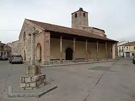A ambos lados del ábside se sitúan dos dependencias de planta cuadrada correspondientes a la sacristía y a la torre. Adosado a la nave, en su lado este, se abre un pórtico.