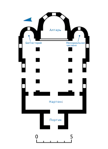 Los expertos del campo respectivo han sugerido que se trata de la iglesia construida por el emperador bizantino Justiniano I para las tribus abaza cuando se cristianizaron alrededor del año 543 d.C. Esta iglesia es uno de los templos cristianos más antiguos de Georgia, además del edificio más grande y más complejo de esta época en toda Abjasia. La presencia en una iglesia de reliquias bautismales y tumbas atestigua la importancia del centro religioso y el templo como lugar de peregrinación, siendo presuntamente la primera sede episcopal de los abasios.