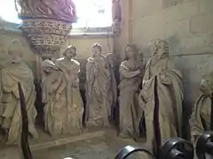 - El grupo escultórico conocido como Mise au tombeau [Entierro de Cristo], compuesto por Jesús que está tendido, un personaje sosteniendo a la Virgen, y a sus lados Maria, Magdalena y otros cuatro personajes, declarado monumento histórico.[5]