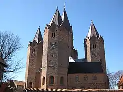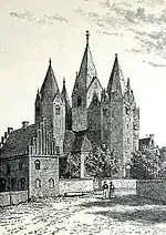 Su emplazamiento y disposición la convirtieron en un edificio que, además de funciones religiosas, también servía para la defensa de la ciudad. Sin embargo, su conformación fue relacionada también con la representación de la Jerusalén Celestial, que en la Edad Media era concebida como una ciudad fortificada de cinco torres.