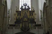 El mobiliario barroco con las tallas de manera y el órgano son de los años 1670-1673. El órgano es uno de tres órganos más viejos en Praga.