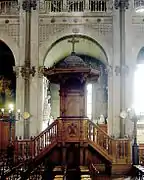 La tribuna consta de tres ábsides poligonales que se abren a una única gran sala central, el crucero, de planta octogonal y cubierta por una cúpula. En el centro, sobre un alto podio, hay un presbiterio, con el altar mayor coronado por un ciborio de hierro fundido dorado. En la base de la cúpula, hay cuatro medallones pintados que representan a los evangelistas, y son de William Bouguereau los frescos de la bóveda de los dos ábsides laterales, que representan escenas de la vida de San Juan Bautista (derecha) y escenas de la vida de San Agustín (en izquierda); estos dos ambientes también tienen un matroneo que los divide en dos niveles, de los cuales se utiliza el inferior como capilla, la de la derecha dedicada a San José y la izquierda al Sagrado Corazón de Jesús, con la estatua del dedicatario dentro de un baldaquino sobre el altar. La capilla axial está dedicada a la Virgen María, con una estatua de mármol de la Virgen con el Niño de León Jaley.