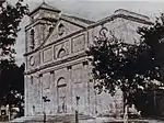 La iglesia a principios del siglo XX, con solo un campanario, algo más bajo que el actual.