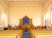 La arquitectura interior de la iglesia refleja la antigua tradición presbiteriana, con un púlpito central y un mínimo de decoración. Un memorial a los escoceses que cayeron en la campaña italiana de la SGM tienen un lugar destacado.