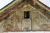 La iglesia está hecha a base de adobe, conformada por una nave y dos capillas laterales.[3] Su exterior es de piedra, y cuenta con un amplio atrio y un alto muro de adobe.[3] En el frontis de la construcción destaca un fresco del patrono San Andrés con su hermano San Pedro y la Virgen María entre ambos.[6] En el interior de este santuario-fortaleza[6] se pueden apreciar diversas pinturas, estropeadas en su mayoría.[6]