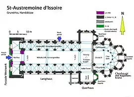 Esta dedicada a Austremonio de Clermont o Stremonius, primer obispo de Clermont-Ferrand y evangelizador de Auvernia al final del siglo III.[2] Las restauraciones del siglo XIX han recuperado la policromía del interior de la iglesia (entre 1857 y 1859).[2]