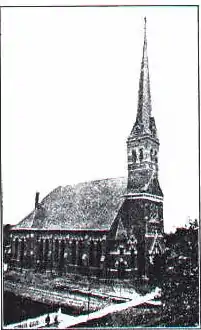 La iglesia de San Bonifacio fue un ejemplo ecléctico del neorrománico y la arquitectura gótica ruskiniana. Fue construido en forma cruciforme de ladrillo rojo y madera pintada de color crema, y presentaba un techo de nave alta, arcos de entrada de piedra empinados a dos aguas y un pabellón central con arcos redondos empotrados.[1] La iglesia tenía un campanario cuadrado de lamas con techo de metal octogonal. Las paredes laterales estaban sostenidas por contrafuertes pesados adornados con piedra.[1] La rectoría era un edificio de piedra de estilo italianizante de dos pisos, pintado de negro. Tenía un techo a cuatro aguas modificado con buhardillas a dos aguas y una línea de cornisas con corchetes, un pórtico abierto a dos aguas y marcos de ventanas rectangulares y de arco de medio punto.[1]