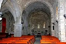 En su origen románico del siglo XI constaba de una sola nave con bóveda de cañón, seguida y reforzada por tres arcos torales que la dividían en cuatro tramos y un ábside semicircular con bóveda de cuarto de esfera.[1]