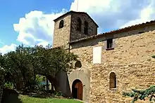 Consta de varios cuerpos añadidos a la construcción primitiva, que era de una sola nave cubierta con bóveda de cañón, rematada al este por un ábside semicircular que se alza junto a uno de los riscos de Tavertet. Las partes añadidas son una prolongación de la nave hacia oeste, donde se construyó el campanario de planta cuadrada; una nave lateral en el lado del norte, cubierta con arquería gótica y una capilla de planta cuadrangular en la esquina del sur, cerca del presbiterio. El ábside, que es la parte más antigua, está cubierto con una bóveda de cuarto de esfera y tiene planta semicircular, con tres ventanas absidales abocinadas, situadas en el centro de cada una de las tres bandas que aparecen en el exterior separadas por lesenas desiguales. La banda situada al norte tiene una serie de cinco arcos ciegos, la central tiene tres y la situada hacia el sur tiene cuatro. La nave está cubierta con bóveda de cañón reforzada por tres arcos fajones que la dividen en cuatro tramos. El portal se encuentra situado en el sur y es adintelado, con dovelas de gran tamaño. En este mismo lado hay dos ventanas dobles de origen claramente románico mientras que la del presbiterio es posterior. La fábrica del ábside es de sillares irregulares pero bien trabados y bastante juntos, mientras que en el resto de la nave tiene unas juntas gruesas de mortero de cal. En el exterior los aparatos están bastante mezclados, predominando el que tiene las juntas gruesas. A pesar de su heterogeneidad, presenta un cierto aspecto unitario, en el que predominan los modos característicos de la arquitectura de la comarca en el siglo XI.[2] La pila de agua bendita que se conserva en el interior es, probablemente de la época románica.[3]