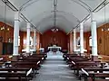 La iglesia, construida en madera, cuenta como elemento principal en su fachada una torre campanario por sobre la entrada al templo, la cual es sostenida por dos columnas paralelas frente al acceso principal al templo y posee una figura de un gallo galo en la punta. En su interior, cuenta con una única nave principal de forma cóncava, sostenida entre dos filas de columnas que forman dos arcadas paralelas hasta el altar. A un costado del templo, se ubica un patio que conecta la parroquia con la Casa Parroquial, donde se emplaza una réplica de la Gruta de Lourdes techada, además de ser el lugar donde se coloca anualmente el pesebre navideño.