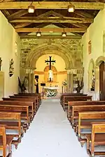 Arco presbiteral con los capiteles muy deteriorados a causa de un incendio en 1936.