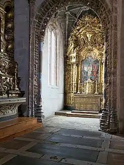 Durante un espacio de unos 160 años, entre los siglos XVI y XVII, el interior de la iglesia fue revestido en madera por imagineros portugueses, gracias a las aportaciones de las familias de Oporto que establecieron sus panteones en el recinto de la iglesia, como consecuencia de lo cual, presenta el aspecto actual.