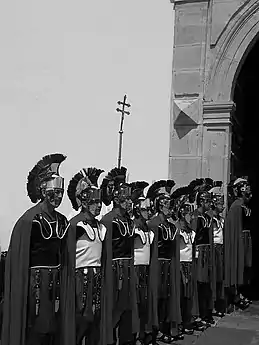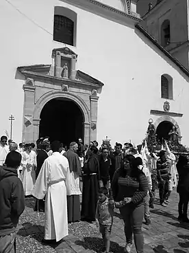 - Guardia romana a las puertas de San FranciscoPúlpito de la iglesia de San Francisco, de marcadas trazas barrocas colonialesCentro Histórico de TunjaProcesión de El Resucitado en la Iglesia de San Francisco de Tunja. Talla de San Juan.