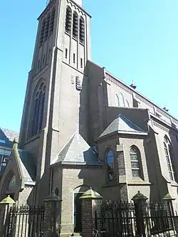 La iglesia está en la misma ubicación de una antigua iglesia de la Compañía que no era visible desde la calle. La iglesia fue construida en 1905 y está dedicada a San Francisco Javier, uno de los fundadores de la Compañía de Jesús. El arquitecto fue Nicolaas Molenaar Sr., quien diseñó la iglesia en un estilo neogótico. De 1929 a 1930, la iglesia fue ampliada y la torre fue diseñada por su hijo Nicolaas Molenaar Jr. En 1989 , se decidió que la torre era inestable y se propuso fuese demolida. Sin embargo, se evitó la demolición propuesta. En cambio, en 1991, se hicieron trabajos de restauración de la torre que fue terminada y se le colocó una placa.