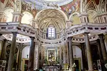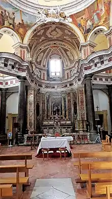 La decoración de la iglesia refleja los aspectos típicos del barroco siciliano, con sus mármoles, estucos, frescos, pinturas (decorando principalmente las paredes del ábside y capillas), jaspe y pastas de vidrio.