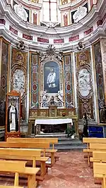 - Brazo izquierdo o sur: Capilla de Sant'Ignazio di Loyola. Sala dedicada a San Ignacio de Loyola con tres cuadros que representan al fundador de la Compañía de Jesús en medio de decoraciones en mármoles mixtos.