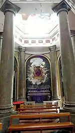 - Segunda cúpula suroeste: Capilla del Santo Crucifijo. En la elevación hay un crucifijo de madera que data del siglo XIX, un artefacto engastado en un relicario de estilo rococó.