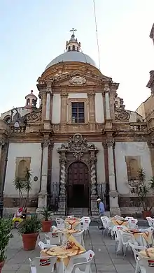 - La obra terminó en 1710 y, como se puede leer en la placa colocada en el lado derecho de la entrada, el 24 de noviembre de 1711 fue consagrada al culto por Bartolomeo Castelli de Palermo, obispo de Mazara del Vallo. En cambio, algunos documentos afirman que los escultores y marmolistas trabajaron en ella hasta 1743, reemplazando las decoraciones de estuco anteriores. La iglesia, clara representación de las producciones barrocas en Sicilia, está ubicada en el distrito de Albergheria, en el lugar anteriormente ocupado por un número considerable de edificios, demolidos para dar lugar a la construcción de la casa de la Tercera Prueba de la Orden de los Jesuitas (que existió hasta cerca de 1960), llamada así porque en ella los jóvenes jesuitas hacían voto de fidelidad al Papa.