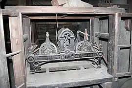 El mecanismo de relojería es francés, marca Gourdin-Sarthe. En una de las campanas se lee: «Fundición de Crouzet-Hildebrand en París 1881», Firma de la fundición parisina Crouzet-Hildebrand.[4]
