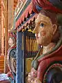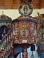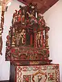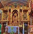 La iglesia cuenta con varios retablos tallados a manos que muestran un gran sincretismo cultural. Entre los retablos más destacados podemos mencionar el retablo de la Purísima, el cual cuenta con 192 piezas; el retablo de la Pasión, el de san Antonio y el de las ánimas del purgatorio, con 120 piezas cada uno. Es indudable la presencia del barroco churrigueresco en estos, pero hay una notable influencia indígena en los motivos tallados. En el 2007 la iglesia fue sometida una restauración exhaustiva y se desmontaron estos retablos pieza por pieza. Uno de los más trabajados fue el altar mayor, el cual cuenta con 480 piezas.[3]