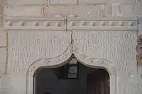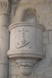 Por todo el templo abundan timbres heráldicos, siendo el más frecuente el blasón de la familia Colmenares, que se compone de nueve ruedas de carro dispuestas en filas de tres sobre fondo de sinople.[5] Todo ello nos informa de quiénes fueron los patrocinadores de las obras y a veces la fecha de las mismas.