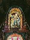 De los cinco retablos presentes en el templo, todos ellos de estilo barroco, el más destacado es el que preside la capilla mayor. Este retablo es del siglo XVIII y a él contribuyeron económicamente el alférez de Manila Don Alberto Jacinto de Reyes y el gobernador de las Reales Cajas de Cuzco Don Domingo Antonio de Ledo Domínguez. La obra surgió en 1748 con el fin de cubrir el trasaltar, aportando Don Domingo una suma de 500 reales para el altar mayor y efectuando la siguiente donación en 1749: «un viril de plata sobredorado con sus cristales de 7260 reales, además de un arca de 22 reales, catorce mecheros de bronce; una aureola y cuchillo, pluma de plata para San Ginés».[11]