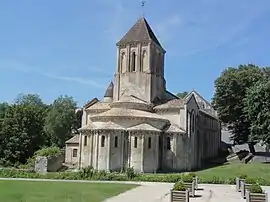 Su planta es compleja para la época y está diseñado para facilitar la asistencia de los peregrinos. Una única nave central con laterales conduce a un transepto bordeado por absidiolos, y luego a un coro con deambulatorio y capillas radiantes. Limita con las riberas del Béronne, que se atravesaban por un vado.