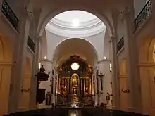 El altar mayor, original del siglo XVII, fue tallado en madera y dorado posteriormente por Isidro Lorea.