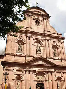 Su fachada fue construida entre 1774-1775, siendo atribuida al arquitecto y estucador electoral Johann Peter Jäger, bajo la influencia de la arquitectura barroca romana.