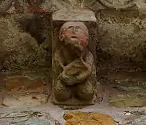 - Canecillo que muestra una figura humana con las piernas abiertas.