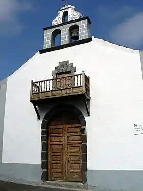La Iglesia cuyas características arquitectónicas se conservan hasta hoy, presenta las típicas de la arquitectura religiosa en Canarias. Tiene una sola nave. La Capilla mayor está diferenciada con arco toral de piedra y capilla colateral en el lado del evangelio. El Coro fue rematado en 1658 y el púlpito de estilo barroco fabricado en 1699. Presenta una fachada, con puerta, balcón y campanario en eje vertical.