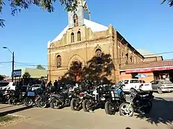 De estilo neorrománico, está construida en albañilería de ladrillo, y destacan los arcos, las columnas interiores, y los muros contrafuertes.[1]
