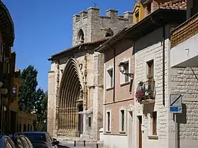 - La portada gótica de nueve arquivoltas, con la imagen de San Juan en el tímpano.