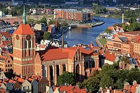 La construcción de las bóvedas y la torre se completó durante la Guerra de los Trece Años. Fue entonces cuando la iglesia recibió la forma en que ostenta hasta hoy día. En 1456, después de que Gdansk regresará a Polonia, Jan Gruszczyński; obispo de Cuyavia, dividió la ciudad en seis parroquias y el templo se convirtió en una iglesia parroquial. Entre 1463 a 1465 la iglesia recibió bóvedas estelares. Durante los siglos XV y XVI, cofradías, artesanos, y familias acomodadas fundaron un total de trece altares, dedicados, entre otros, a la Santísima Virgen María, la Santa Cruz o San Jacobo.
