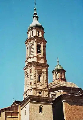 Se trata de un templo de planta de cruz latina con crucero. Sobre el mismo se eleva un tambor de sección octogonal con ventanales y cubierto con cúpula y linterna; interiormente, la estructura presenta un desarrollo circular y apea sobre pechinas, sobre las que realizó sus pinturas un Goya juvenil. Sobre las capillas laterales situadas entre los contrafuertes de la nave y comunicadas entre sí discurre una galería-tribuna conformada por una serie de arcos de medio punto, dos por cada tramo de nave, que actualmente cierran una obra de carpintería y un acristalamiento. La decoración, recargada aunque elegante, fue incorporada en el siglo XVIII. Consiste en molduras y yeserías abultadas con temas vegetales, configurando uno de los interiores barrocos tardíos más interesantes de Aragón.