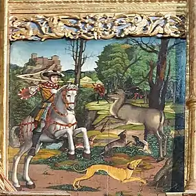 - Tallas del retablo, y las cuatro tablas de la leyenda de San Julián el Hospitalario