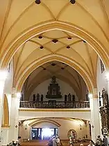 De una época más cercana en el tiempo es la nave lateral, de baja altura, abierta en el lado de la Epístola (meridional); sus tres tramos están cubiertos con bóvedas estrelladas y plementería calada, imitando el gótico.