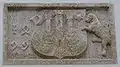 En el techo, los azulejos están puestos de modo que representan el escudo de Zagreb (castillo blanco en fondo rojo) y el Reino de Croacia (Habsburgo).