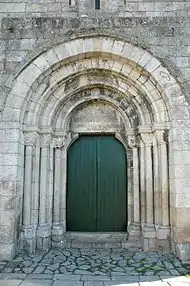 Hay tres portales. El de la fachada principal, con tres pequeñas columnas y arquivoltas, con capiteles con decoración animalista, revela tendencias de Coímbra. En el tímpano, hay una inscripción del siglo XVIII. Por encima del portal, se encuentra una abertura en arco pleno, sostenido por pequeñas columnas. En el portal norte, hay un Agnus Dei grabado en el tímpano. Aquí son nítidas las influencias limosina, especialmente en el uso de los capiteles sin imposta, tal como los encontramos en la catedral de Oporto. El aspecto macizo de la fachada occidental puede ser una solución diferente de la inicial.