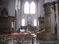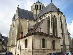 La fachada principal es única en su género por la mezcla entre el gótico y el del Renacimiento, que se debe a la fecha de construcción de la iglesia. La coexistencia de estos dos estilos arquitectónicos se explica por la importancia que tiene el arte arquitectónico en Borgoña en el siglo XVI con el retorno de las formas antiguas y la influencia del arte italiano. El ábside, el coro, la nave central y el transepto son góticos; la nave se terminó alrededor de 1513. La obra se reanudó en 1529 y la fachada, sus dos torres en forma de cúpula, acabadas en 1569 y 1667, sus ornementos con la superposición de tres órdenes (dórico, jónico y corintio) se inspiran en el Renacimiento.[2]