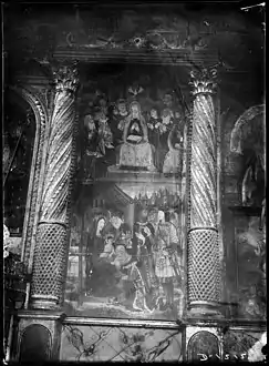 El retablo gótico del altar mayor es del siglo XV. Representa escenas de la vida de la Virgen María y de San Miguel. El cuadro central y los tres del ángulo superior izquierdo son de San Miguel. Las figuras que lo acompañan en el centro son los apóstoles San Pedro y San Pablo. El autor anónimo, «Mestre de Vielha», parece discípulo de Pere Garcia de Benavarri, que trabajó en Barcelona, Lérida y Huesca.