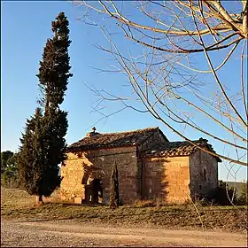 Iglesia de estructura regular con dos cuerpos nave y ábside. La estructura de la nave está reforzada por unos tirantes que evitan el hundimiento de la bóveda. Del románico primitivo conserva la parte del ábside con planta rectangular y del presbiterio. La nave del ábside descansa sobre un repens, que es la ùnica ornamentación que se observa. A los pies de la nave hay una abertura estrecha, en forma de aspillera, por donde recibe luz la capilla.