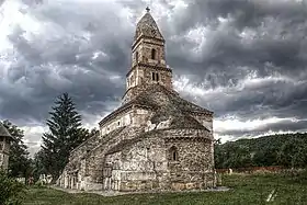 La iglesia actual fue construida en el mismo lugar donde el en siglo IV había otro edificio. Tiene una planta cuadrado de 6x6 metros. El tejado está realizado de trozos de piedra. Entre los siglos XIV-XV se le han añadido más habitaciones con piedras que han sido traídas de las ruinas de la ciudad antigua dacia Ulpia Traiana Sarmizegetusa. El aspecto es único y también raro pero se le ven restos del estilo románico tardío. Las pinturas murales son muy valiosas, fueron realizadas en 1443. La pintura tiene fuerte relación con la pintura de Valaquia.