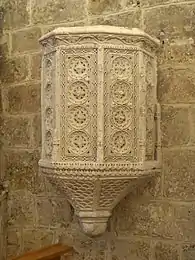 El púlpito está situado en el muro sur de la iglesia, junto a la puerta de entrada.